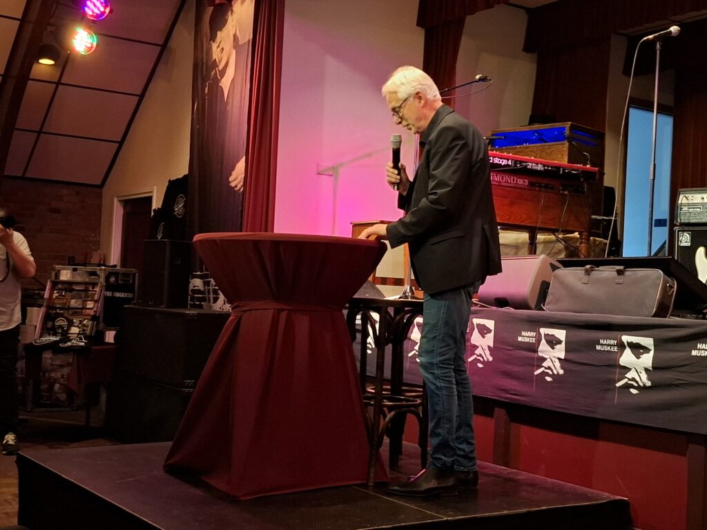 Na de pauze sprak bestuurslid Koert Broersma een half uur lang met drummer Wim Entzinger. Wim was in het verleden onder meer voorzitter van FC Groningen. Hij stond mede aan de wieg van de bouw van de Euroborg en als huisjurist van de Groningse eredivisieclub werd hij bekend als degene die veelvuldig rode kaarten ‘wegpoetste’. Dat Wim een grote voorliefde voor pop- en bluesmuziek (hij was enkele jaren bestuurslid van de Stichting Erfgoed Harry Muskee) heeft, lijkt dan niet echt voor de hand te liggen.