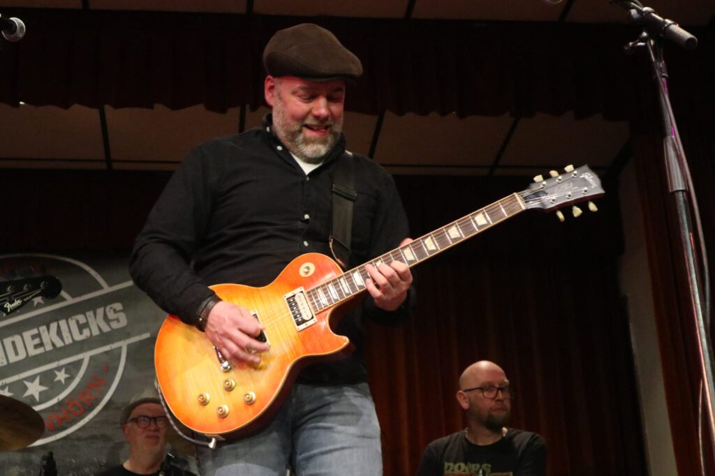 Vervolgens kondigde Sjoerd Looijenga de eerste van in totaal twee sets aan van de band The Sidekicks, die deze middag het muzikale gedeelte voor haar rekening nam. The Sidekicks bestaan sinds 2007 en hebben in die tijd een behoorlijke reputatie opgebouwd in de Nederlandse blueswereld. De band bestaat uit Teo de Haan (zang, mondharmonica), Peter Hummel (gitaar), Fenno de Boer (bas), Arnout Arkenbout (hammond, piano) en Wim Entzinger (drums). ‘Zesde bandlid’ Klaas Wolf verzorgde het geluid. Tot nu toe werden er 3 cd’s uitgebracht, waarvan de derde (Homemade) in 2024 werd bekroond met de Dutch Blues Album Award.