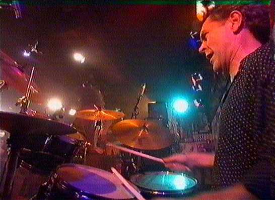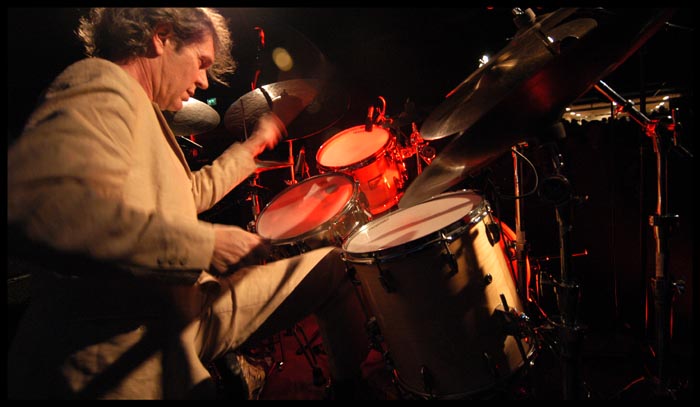 Hans in actie tijdens een drumsolo
